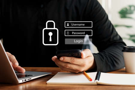 Concept of cyber security, user type login, and password, keeping user personal data safe, encryption, secure internet access, cyber security.