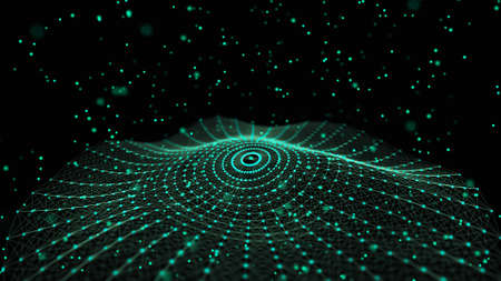 Glowing wavy background. Abstract dynamic wave of particles. Big data. 3d rendering
