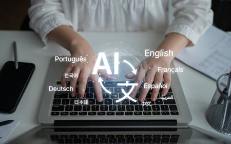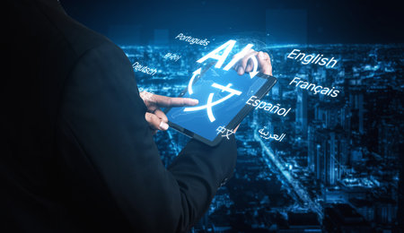 AI artificial intelligence bridges global language communication with multilingual virtual assistants, real-time languages translation, and digital tools for cultural connectivity.