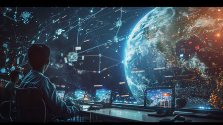 Global Quantum Communication Web: Encrypted Data Flow Monitored by Technicians for Space Operations