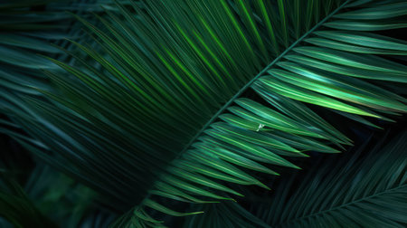 Palm leaves background. Green leaves wallpaper. Exotic jungle foliage. Leaves tropical greenery. Palm leaf closeup shot. Tropical leaf pattern. Palm leaves design. Green palm background.