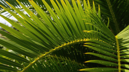 Close up of bright green palm leaves as a natural tropical background