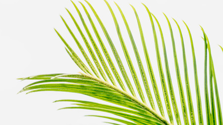 Summer background with tropical greenery leaf - palm isolated on white