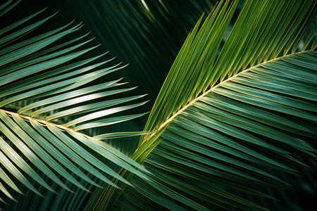 Close up view of beautiful tropical palm leaves