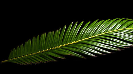 green leaf of palm tree isolated on black background with clipping path.generative ai