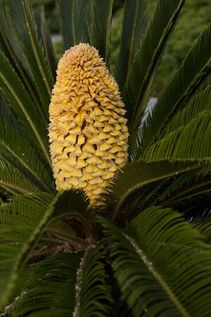 Cycas revoluta - male cycad plant blooms in the garden, Odessa