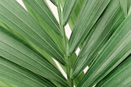Palm leaf close-up. Tropical palm tree leaves background.