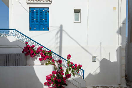 Typical architecture and white houses in Paros or Parikia, Cyclades islands, Greece