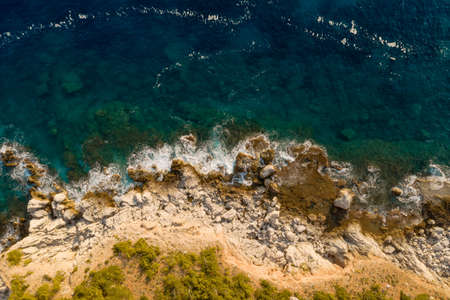 Aerial view of sea waves and fantastic Rocky coast, Montenegro
