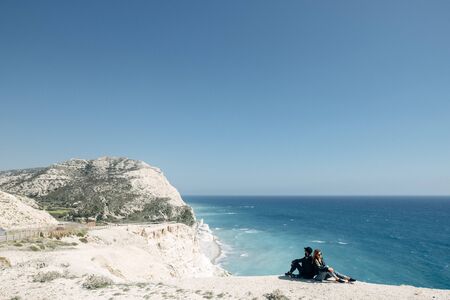 Cyprus. Rock Of Aphrodite. Petra-Tu-Romiou top view. Cliffs on the beaches. Resorts of Cyprus. Hills of Aphrodite. Mediterranean Sea. mediterranean cruise. Kouklia. mediterranean seascape