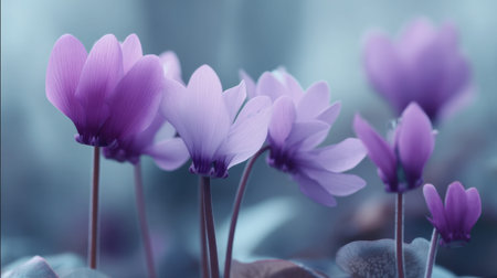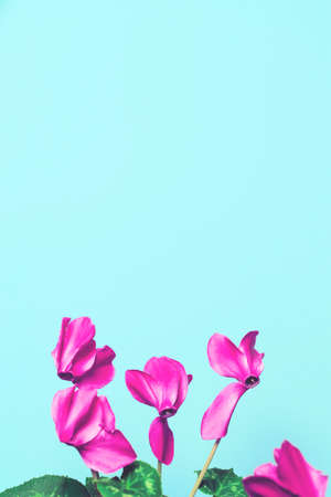 Cyclamen flowers close up. Beautiful abstract backdrop with copy space