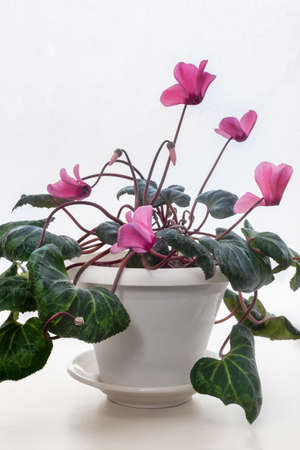cyclamen flower pot on background white wall