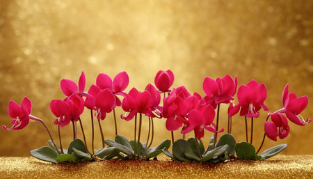 Cyclamen flowers on golden background with copy space for your text