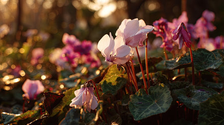 The Cyclamen at dawn soft golden sunlight kissing leaves clean air natural color