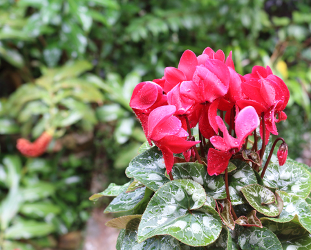 colorful red cyclamen flowers closeup in the garden