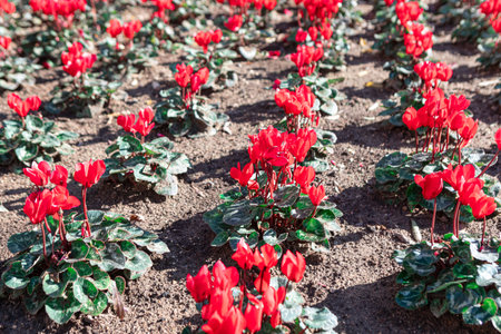 Flower bed of red cyclamen (Cyclamen persicum)