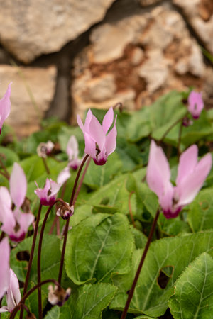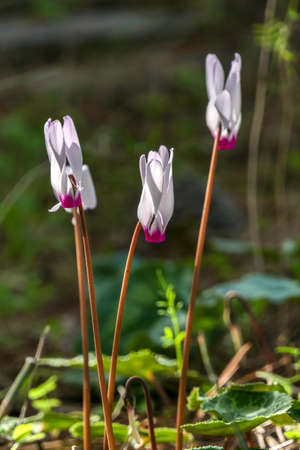 Persian cyclamen (Cyclamen persicum) wild flowers in Styria state of Austria.