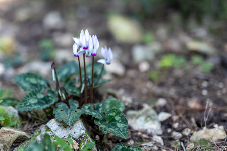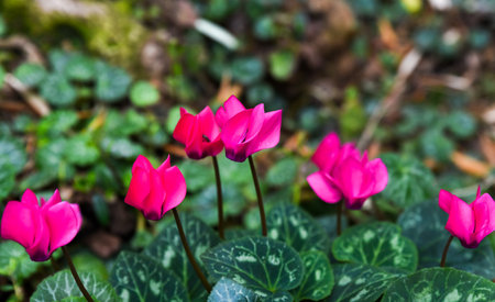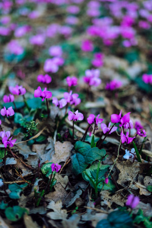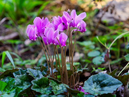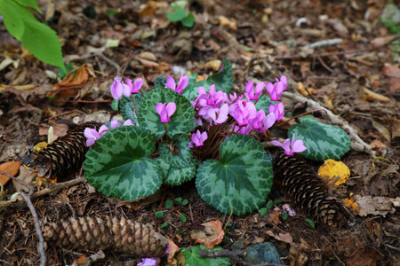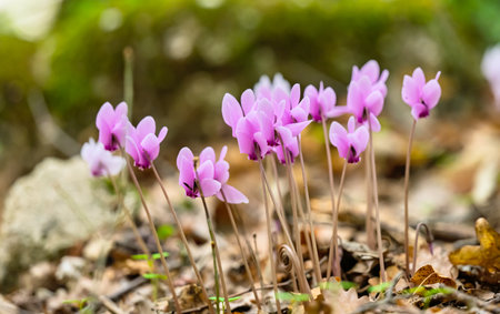 cyclamen flowers growing in the forest