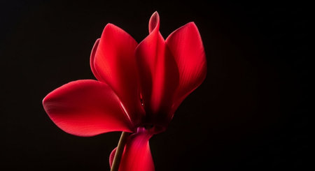 Red flower of cyclamen on a black background, close-up