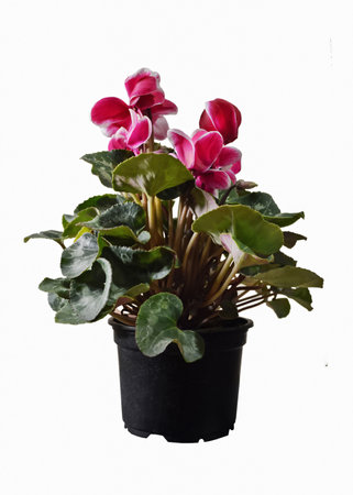 Cyclamen in flower pot isolated on white background