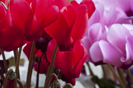 Red and pink cyclamen flowers