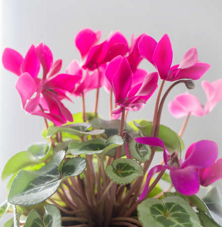 Beautiful Cyclamen persicum Flowers closeup, soft focus.