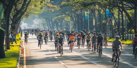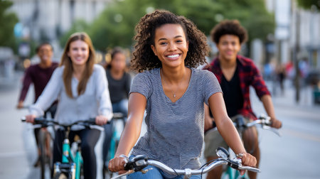 Diverse group of cyclists enjoying a ride through city streets on a sunny day