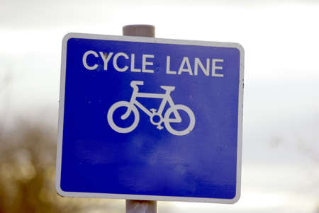 Sign of a bicycle path on the sidewalk.