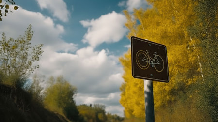 An AI generated illustration of an informational sign indicating the direction of a bike ride in a park setting