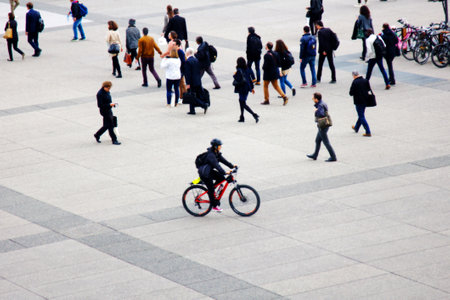 Paris, France - September 25, 2017: a motley crowd (medley) in the square of the Brotherhood, but please note that in autumn and winter people wear mostly dark clothes