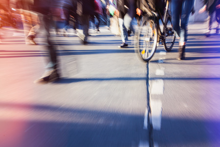Cycling in the city. Urban cycling. Motion blurred people riding bicycles in the city
