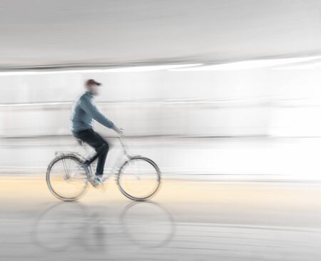 Man riding on bicycle on the road, blurred motion
