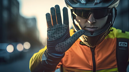 Mid section of athlete wearing cycling gloves