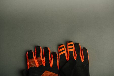 bicycle orange gloves Isolated on a gray background