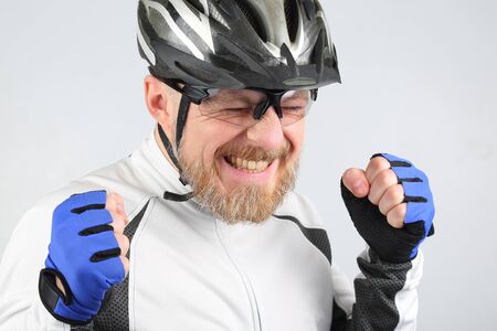 portrait of happy laughing bearded cyclist