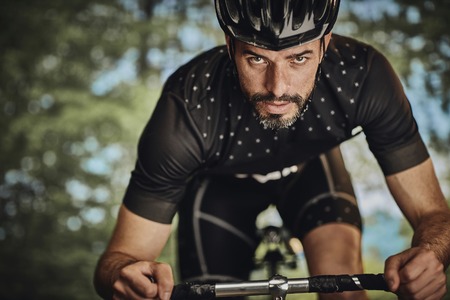 Cyclist Riding a Mountain Bike on the Road. Extreme Sport Concept.