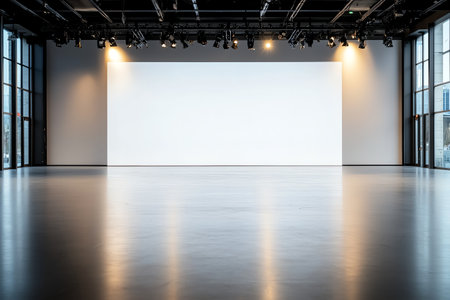 AI-Optimized Content Creation Studio with Dynamic Backdrops - Seamless infinity wall, smart rotating LED panels, automated lighting presets, soundproofed industrial