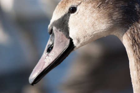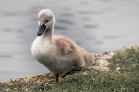 Close Up of Beautiful Baby Swan / Cygnet at the Edge of the Lake