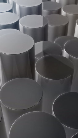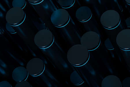 3D rendering of abstract cylindrical geometric surfaces in virtual space. Randomly placed geometric shapes. Bright and beautiful background made of cylinders