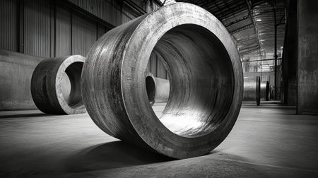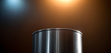 A polished metallic cylinder gleams under soft, warm light, suggesting industrial precision and modern innovation. Ideal for technology, engineering, or manufacturing concepts.