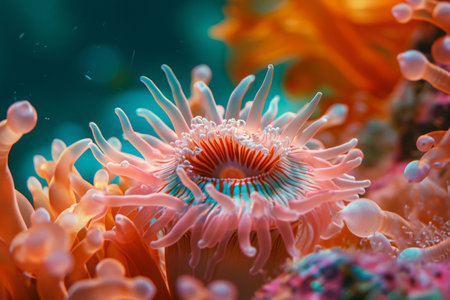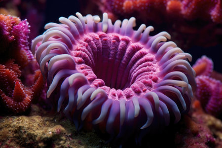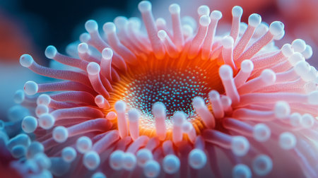 macro shot of sea anemone tentacles and mouth, created with generative ai