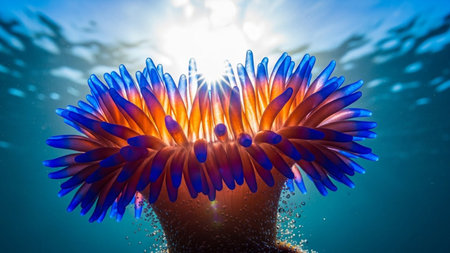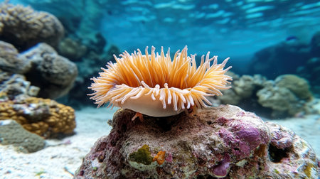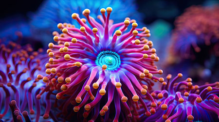 Beauty of an underwater anemone with this vibrant close-up photo. Perfect for adding an exotic touch to your visuals. Generative AI