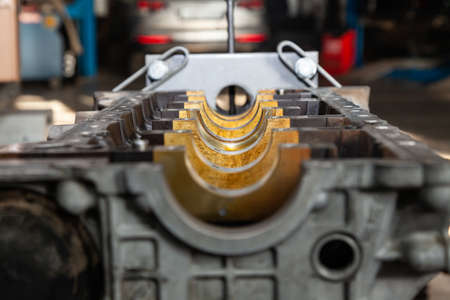 Disassembled cylinder block. Engine repair services, Close-up.