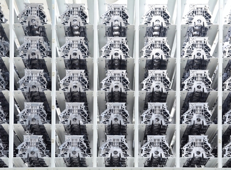 Manufacturing components for new engines stored in the shelf.