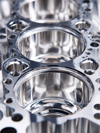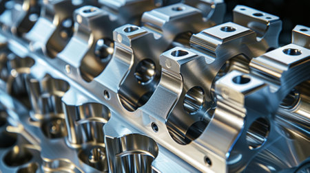 This high-resolution image showcases a close-up view of precision engine components featuring a shiny metallic finish, highlighting intricate details and craftsmanship.