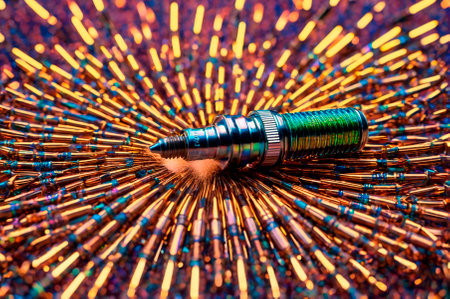 Spark Plug on Bullet Background with Radial Effect. Generative AI.