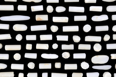 Bundle of razor clams. Overheadshot. Isolated over black slate