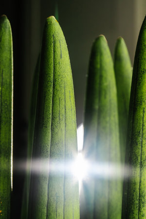 Sansevieria cylindrical close-up with light. Abstract natural background.