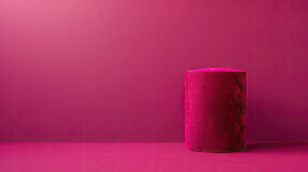 Cylinder pedestal covered with rich red fabric, viva magenta background, premium display