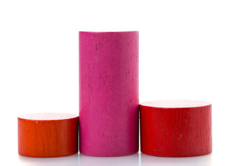 red wooden cubes for child development on a white background. kids toys. selective focus